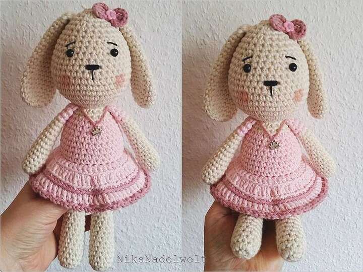Anna ist ein Häschen zum Kuscheln und Liebhaben, aber auch als (Oster) Deko sieht sie ganz zauberhaft aus. Anna ist ein ganz typisches Mädchen, fühlt sich wie eine Prinzessin, trägt immer Kleidchen und dann natürlich in rosa/pink. Zur Osterzeit trifft sie sich traditionell mit den "wilden Hühnchen" (ebenfalls eine meiner Anleitungen) und verbringen dann eine lustige Zeit miteinander ;)