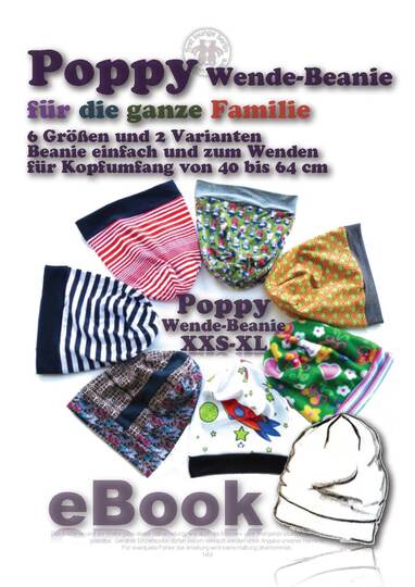 Nähanleitung für eine einfache Beanie oder eine Wende-Beanie mit sehr ausführlicher Bebilderung und Beschreibung. Das Tutorial umfasst insgesamt 53 Seiten und 118 Bilder, mit vielen Tipps und Tricks. Auch für Nähanfänger geeignet