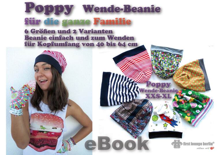 ♥POPPY Trendige, schlichte Mütze oder Wende-Mütze Beanie für die ganze Familie.