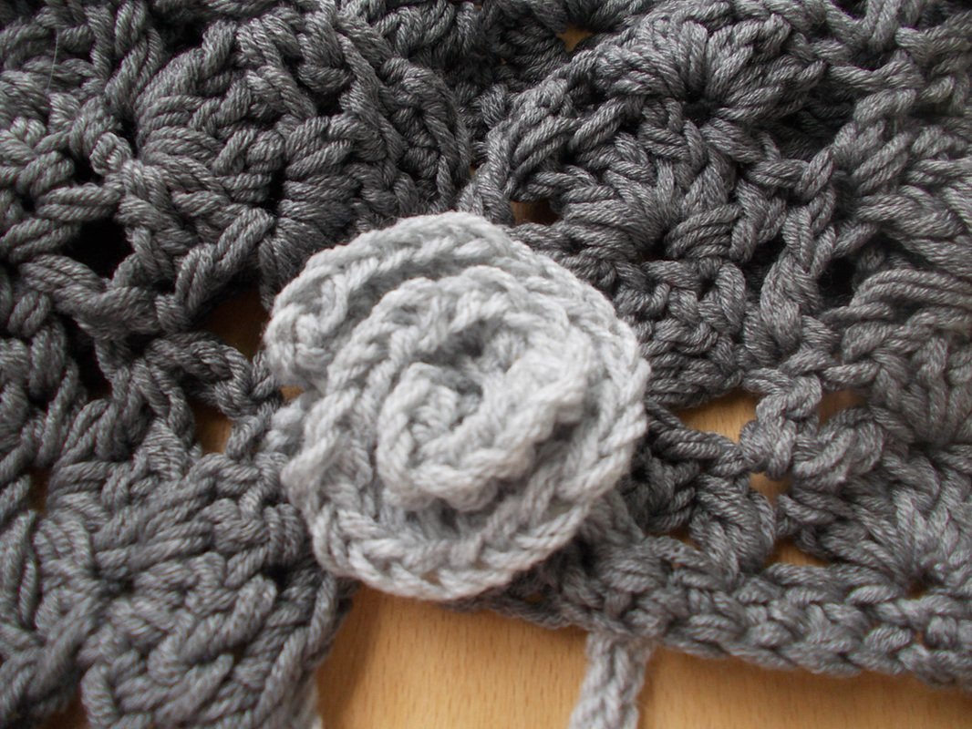 Die 6-seitige Anleitung (pdf-Datei) mit 45 Arbeitsbildern beschreibt das Tuch und die Häkelrose, dazu auch, wie das Tuch breiter bzw. länger gehäkelt werden kann.
