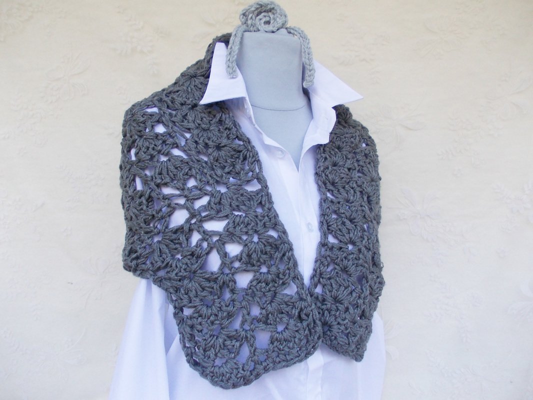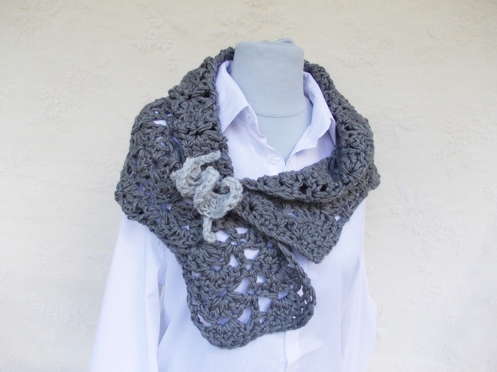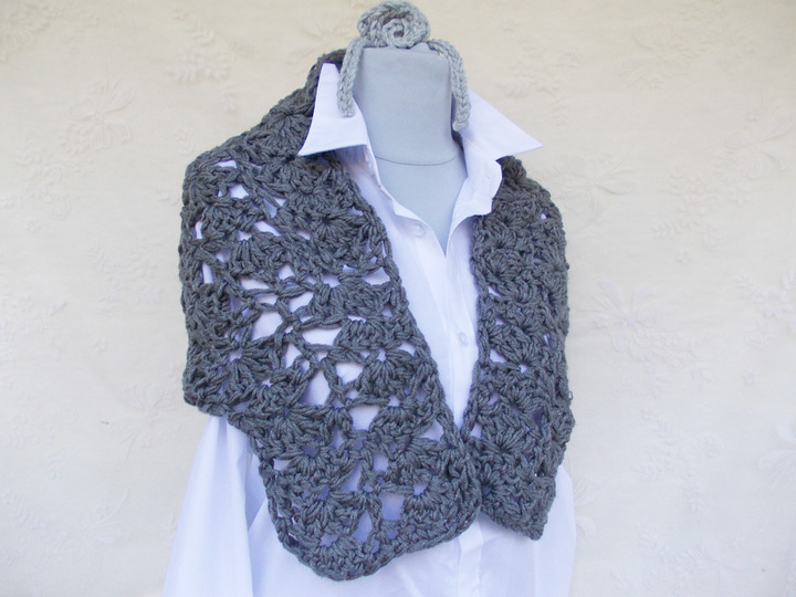 Ein schöner Schal für das ganze Jahr und viele Gelegenheiten, kann mit schönen Häkelblumen als Brosche verziert werden (siehe schöne Anleitungen in meinem Shop).