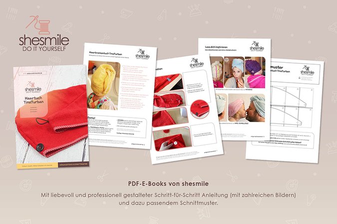 PDF-E-Books von shesmile: Diese leicht verständliche Schritt-für-Schritt-Anleitung mit vielen Fotos ist auch für Nähanfänger geeignet, denn die sehr ausführliche Fotoanleitung begleitet dich bei jedem Schritt.