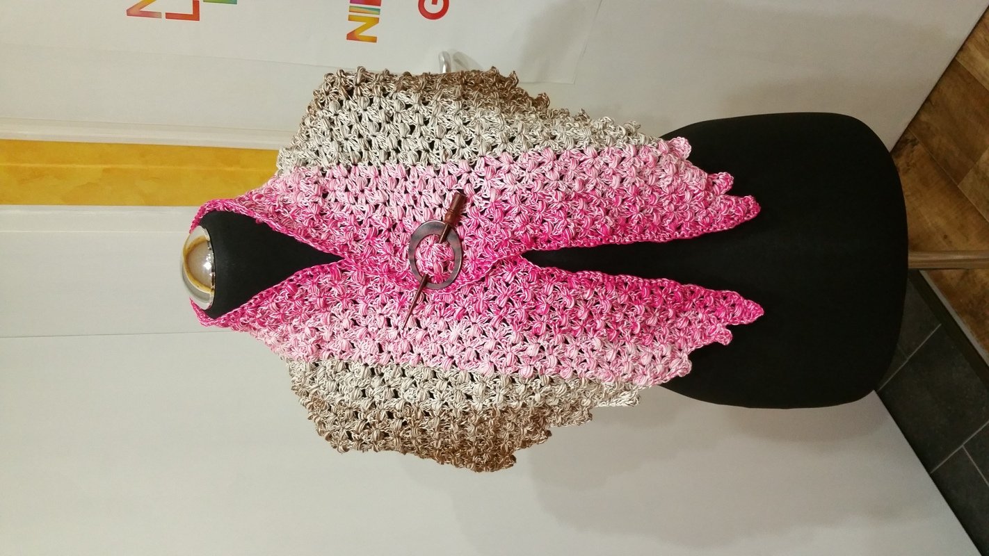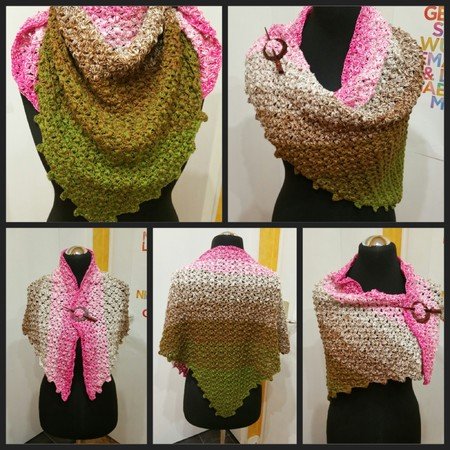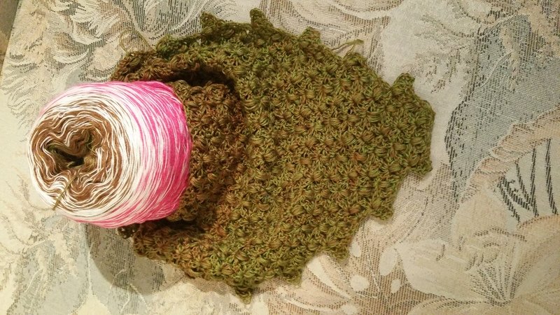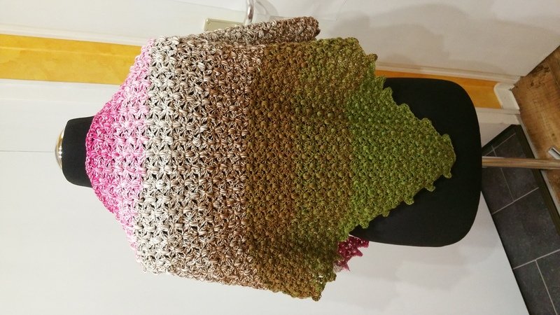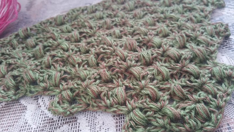 Dieses Tuch ist ganz einfach gemacht, mit Luftmaschen, Stäbchen und Büschelmaschen.