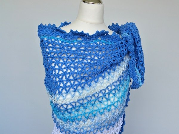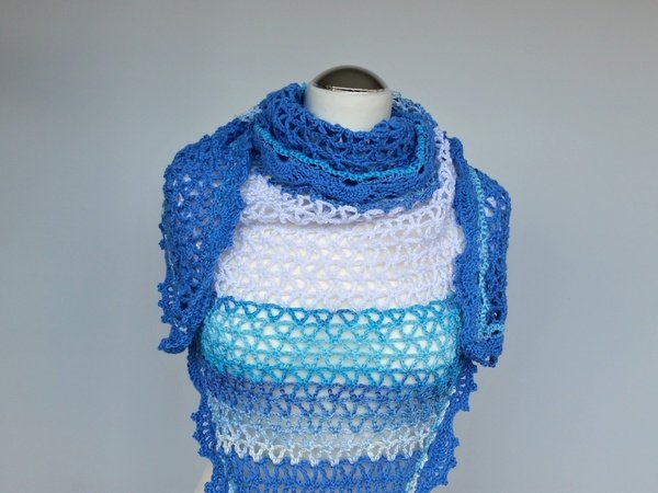 Ein Tuch für den nächsten Urlaub kann man immer gebrauchen und diese schönen Aquafarben passen zum Urlaubsfeeling.Sehr schön auch um einen Bobble zu verarbeiten .