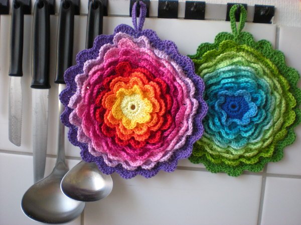 Bringe Farbe in deine Küche, oder die deiner Freunde. Diese alte Art der Topflappen lässt sich in allen erdenklichen Farben herstellen. Auch in uni sehen sie toll aus. Du magst es lieder knallbunt, eher dezent, pastell oder in Naturtönen. Alles ist möglich.