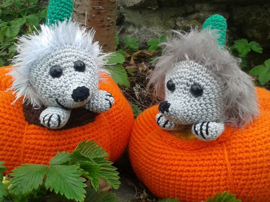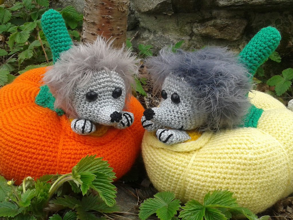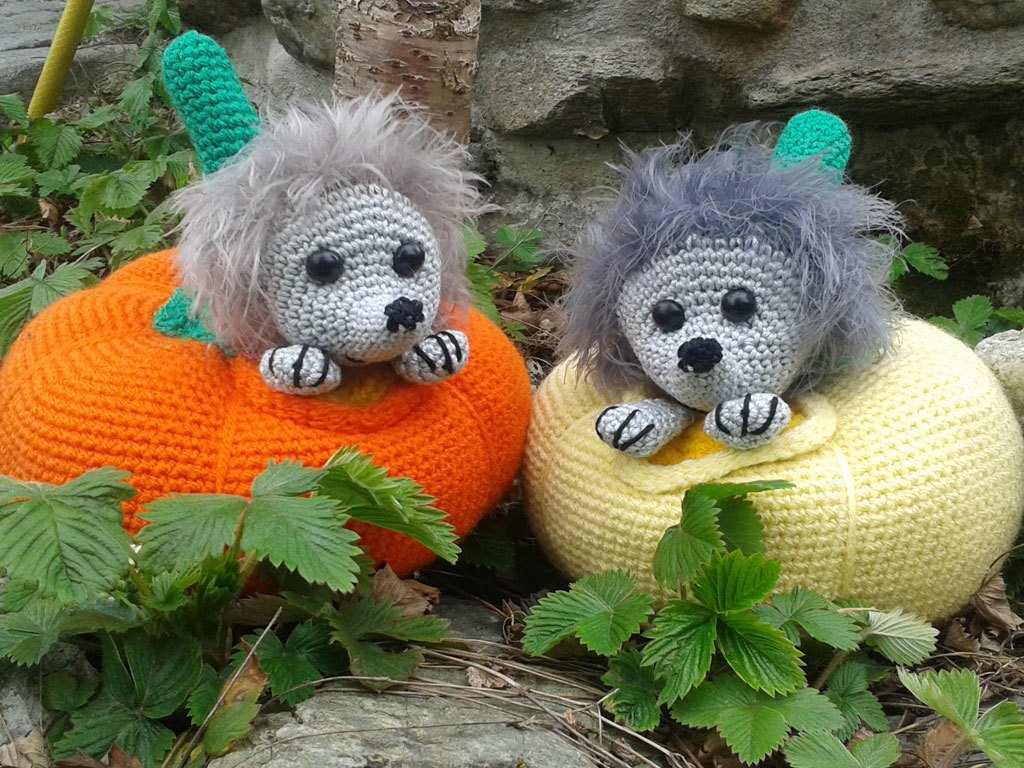 Neugierig guckt das Igelchen aus seinem Kürbis, der als Quartier seine guten Dienste leistet. Der Winter ist vorüber und die ersten warmen Sonnenstrahlen lassen die Igel wieder fröhlich gucken.