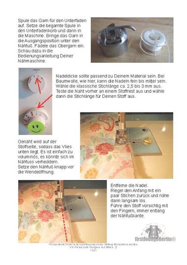 Nähanleitung Schritt für Schritt bebildert. Das Tutorial umfasst insgesamt 33 Seiten mit 100 Farbfotos. Mit vielen Tipps und Tricks. Dewegen besonders für Nähanfänger geeignet.
