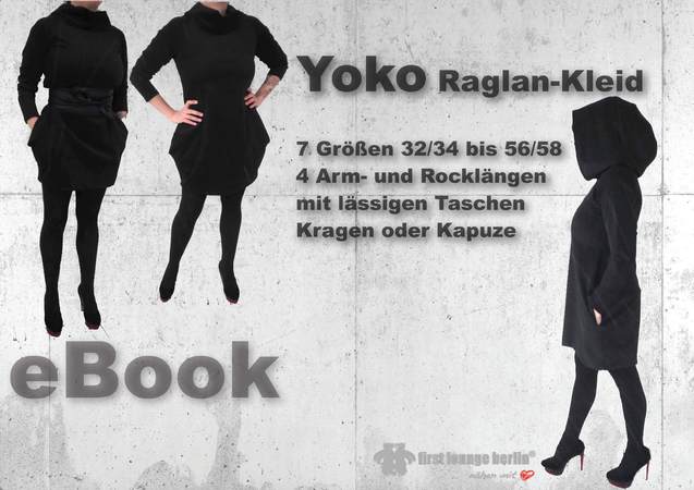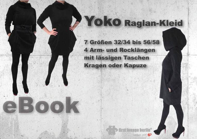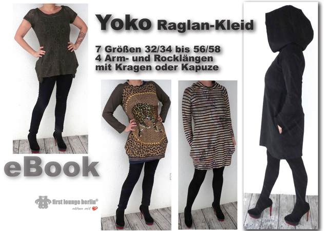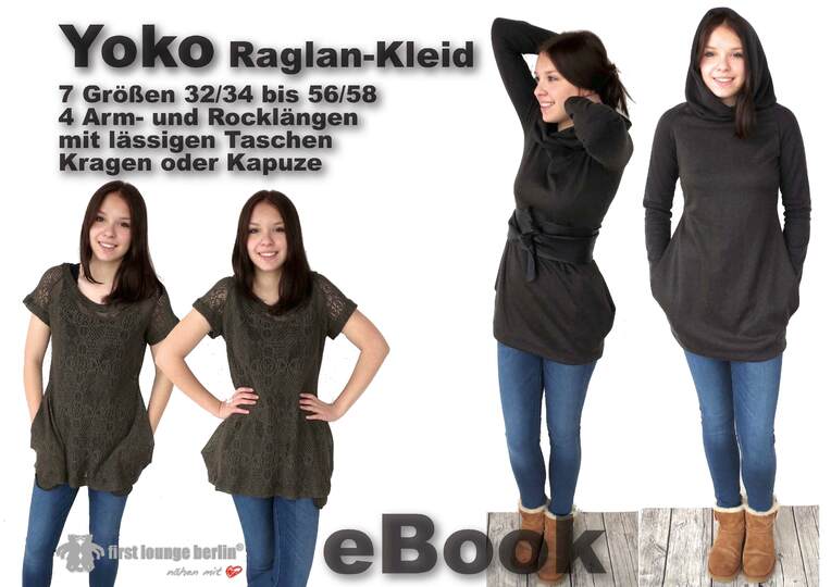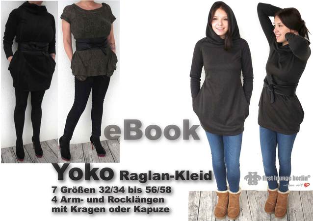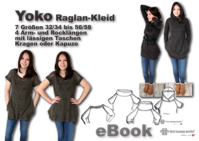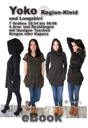 Bequemes sportliches Shirt-Kleid bzw. Raglan-Kleid mit lässigen Seitentaschen, in vielen Varianten nähbar. Ob als Longshirt mit unten herausblitzenden Seitentaschen oder mit Kapuze und Rockteil, Yoko ist immer ein Hingucker. Die Hüfte findet hier genügend Platz und wird dezent umschmeichelt, so dass man sich absolut wohlfühlt. Yoko ist superschnell genäht und lässt Deiner Fantasie freien Lauf für weitere Kreationen da der Schnitt ganz einfach gehalten ist.