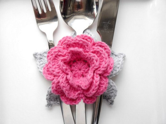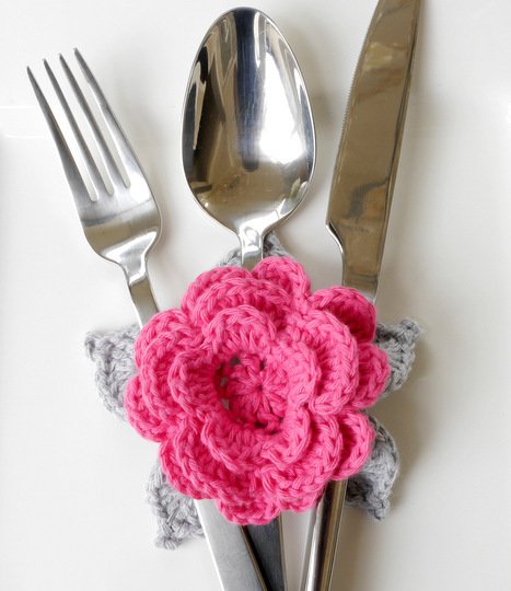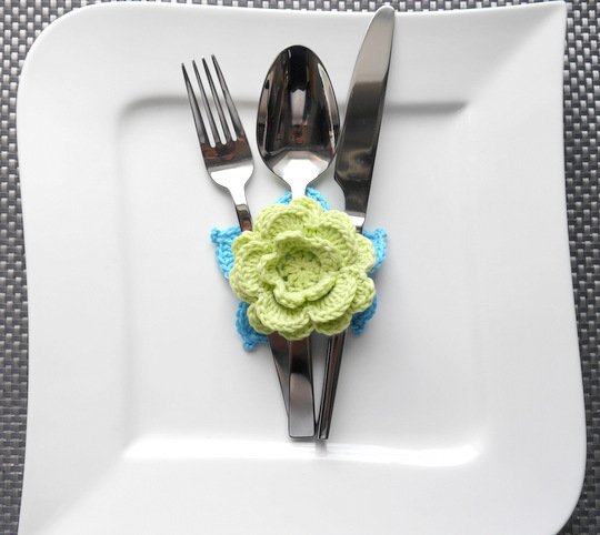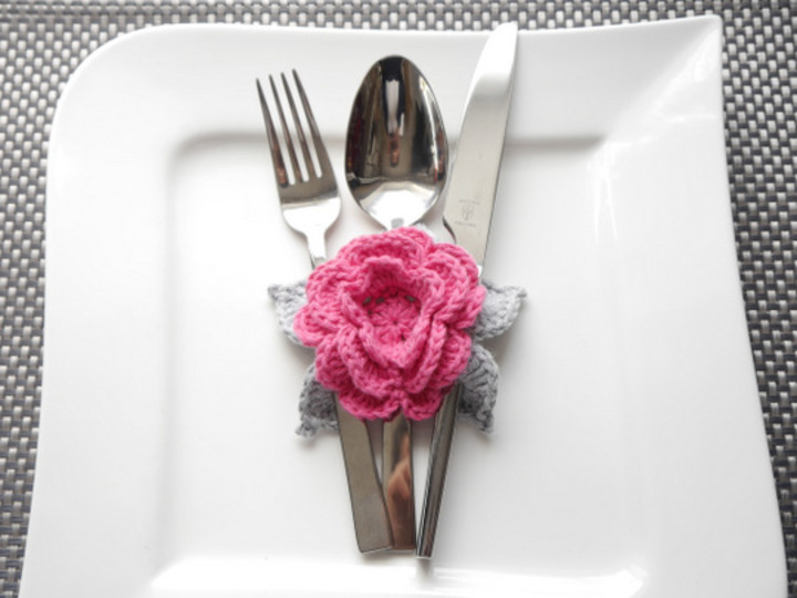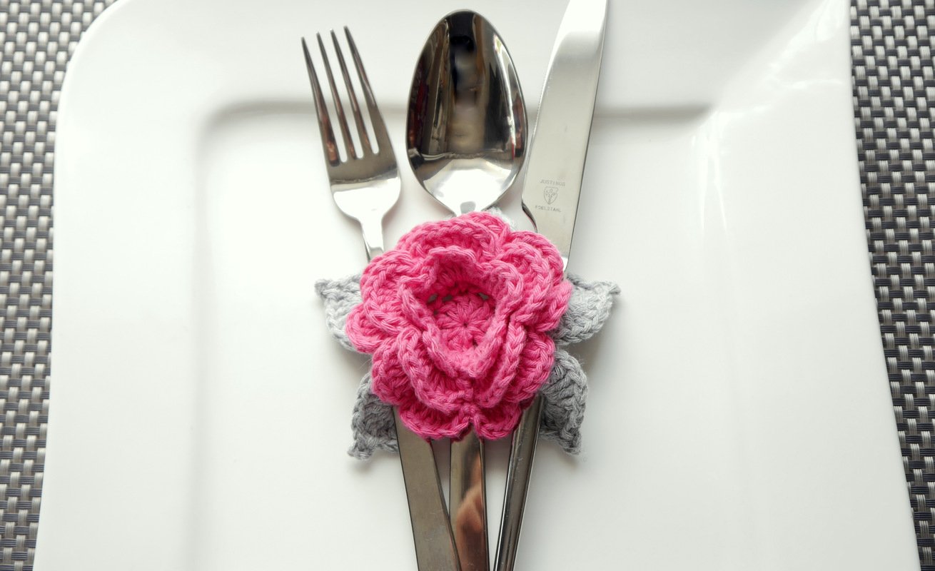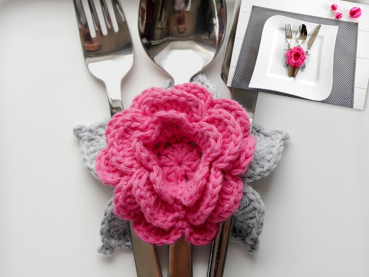 Mit dieser Häkelanleitung kannst du dir ganz einfach diese bezaubernden Bestecktaschen als Blumenapplikation häkeln. Diese Häkelapplikation zaubert florale Dekoration und kreative Häkelei auf deinen hübsch gedeckten Tisch.