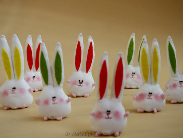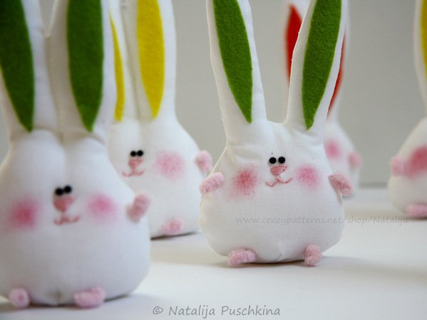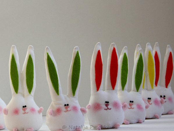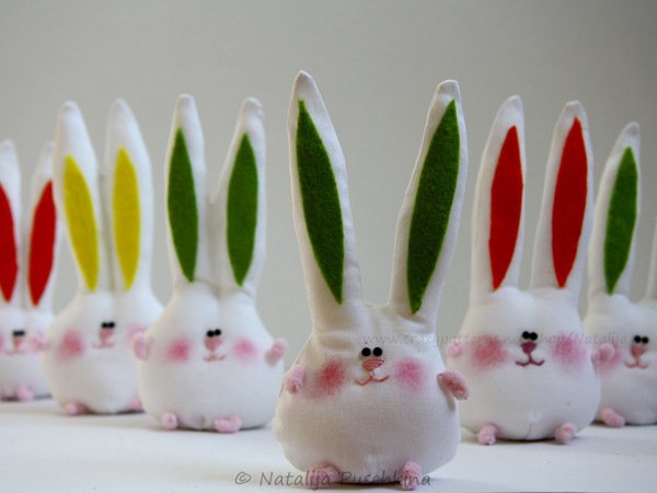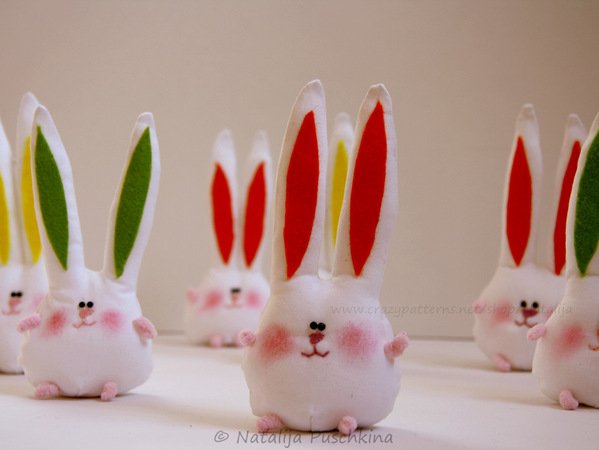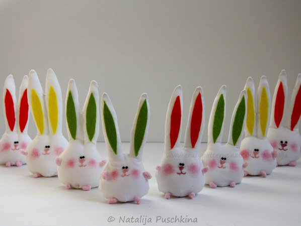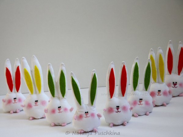 Mit diesen Hasen kann man nicht nur Wohnung dekorieren (Bänder annähen und aufhängen), sondern auch als Deko auf dem festlichen Ostertisch verwenden.