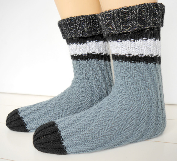 Es sind KUSCHEL- und WOHLFÜHL-SOCKEN für Abende auf der Couch oder als Wellness-Socken, damit man erst gar nicht kalte Füße bekommt. Die Socken sind schnell und einfach gestrickt und auch sehr gut für Anfänger geeignet