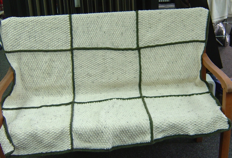 Diese Strickdecke ist schon beim Stricken Entspannung pur und ziemlich einfach zu stricken. Sie besteht aus 9 Quadraten, die zusammengehäkelt sind. Fertigmaße: ca. 130 cm x 130 cm.