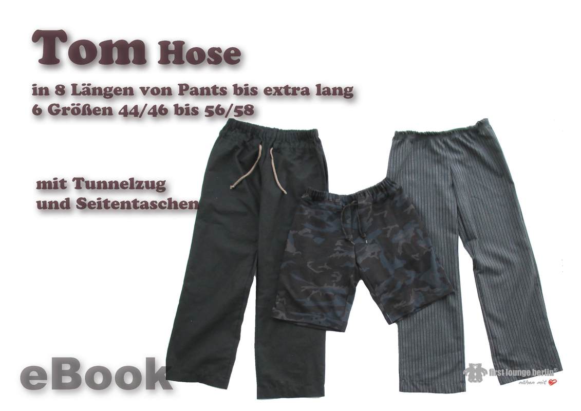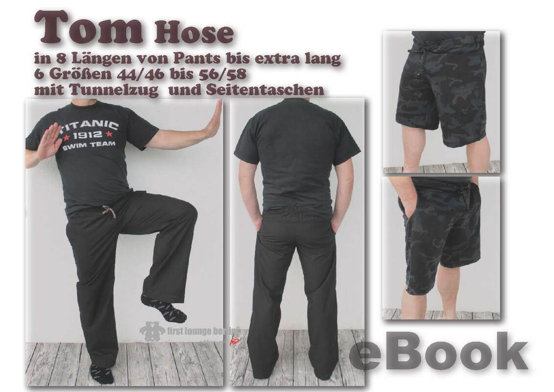 Superbequeme Hose für fast jeden Anlass. Ob Pants, Shorts, Bemrudas, 7/8 oder Jogginghose, Yogahose, Freizeithose oder Leinenhose. Tom kann aus nahezu allen Stoffen und in 8 Längen schnell und einfach genäht werden. Hier kommen auch große Männer nicht zu kurz da die Beinlänge bis 1,95 Körpergröße berechnet wurde. Zu Tom passt Gina.