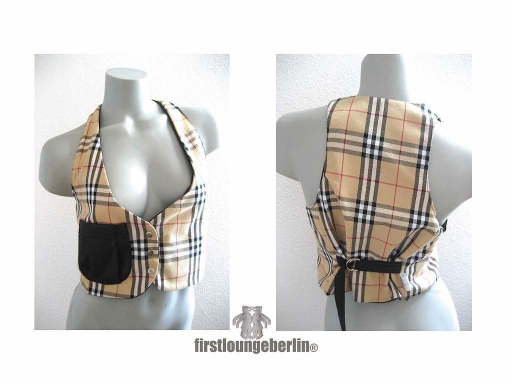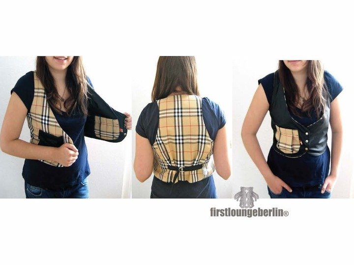 Superbequeme klassische Weste beidseitig tragbar mit aufgesetzter Tasche und im Rücken gebunden oder verstellbar. Auch aus Fell (z.B. ohen Tasche) oder Strick kann die Weste sich sehen lassen.
