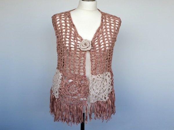 Diese Weste lässt sich nicht nur super kombinieren ,sie kann auch mit mehreren Reihen Granny Square Quadraten zur Long Weste gearbeitet werden.