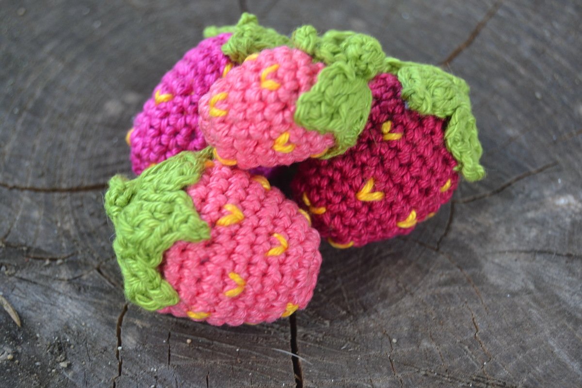 Die Erdbeeren lassen sich super schnell und einfach häkeln und passen perfekt in diese Jahreszeit.