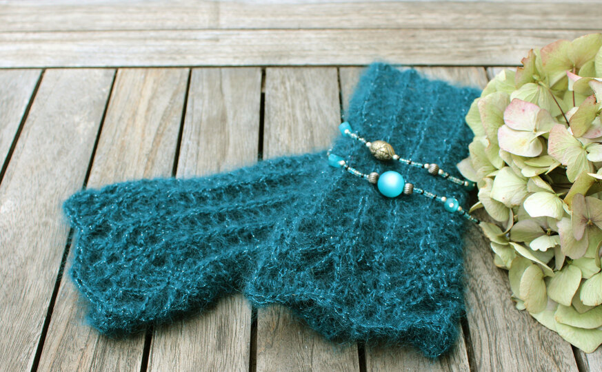 Erst gestrickt, dann gehäkelt! Diese zauberhaften Lace-Mohair-Pulswärmer sind schnell gemacht, kuschlig weich und sehen außerdem noch - durch die Häkelspitze und den Lurexanteil im Garn - super edel aus! Gönn dir selber was Schönes oder mach deiner Lieblingsfreundin ein ganz persönliches Geschenk damit! Die Pulswärmer mit dem wirklich sehr einfachen Lochmuster werden durch die wunderschöne Häkelspitze zum Hingucker! Ob mit oder ohne Lurex - das flauschige Mohair-Seiden-Garn gibt es in vielen Farben, da ist sicher für jede von Euch eine Lieblingsfarbe dabei!