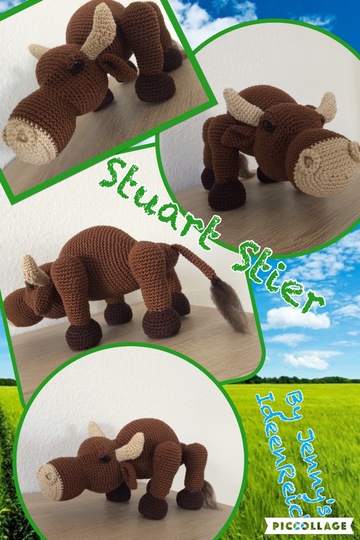 Ihr könnt hier die komplett ausformulierte Häkelanleitung zu Stuart dem Stier erwerben. Sie ist 15 Seiten lang und besteht aus Texten und Bildern zu allen Einzelteilen.