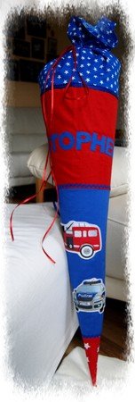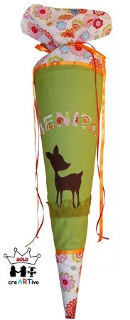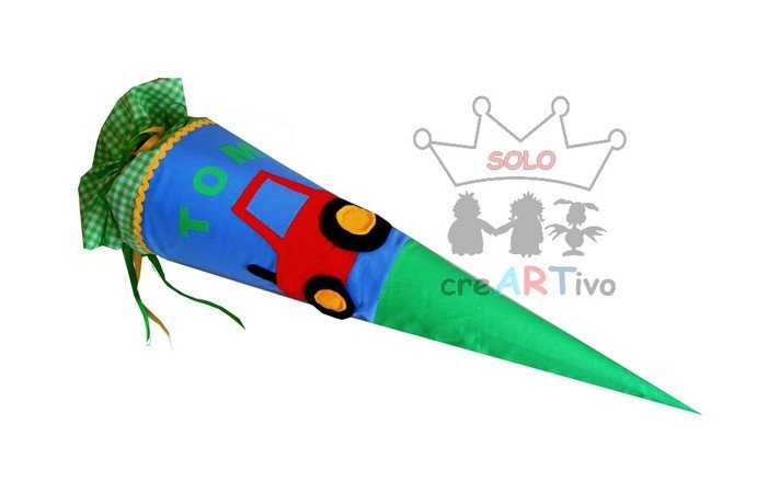 Hier erhälst Du eine Nähanleitung für eine Schultüte mit einer Korpushöhe von 70 cm und eine Geschwistertüte mit einer Höhe von 35 cm. Du benötigst nur noch einen Papp-Rohling den du in Deine genähte Hülle steckst um die Schultüte zu stabilisieren.