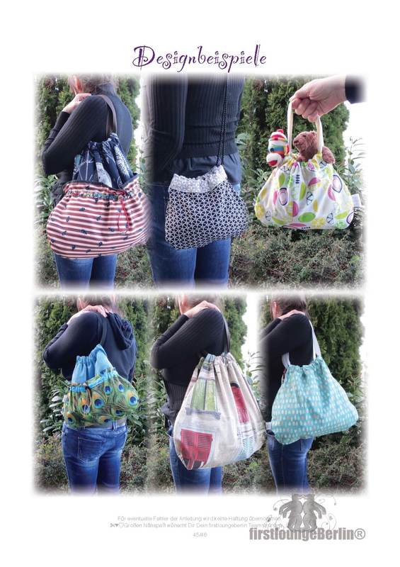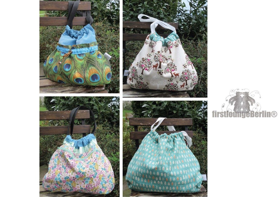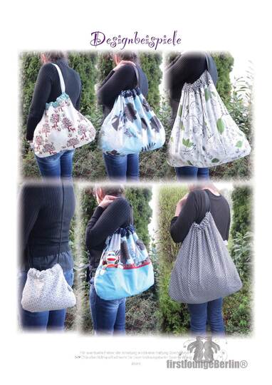 Bebilderte Step by Step Nähanleitung von 55 Seiten und über 120 ausdrucksstarken Farbfotos für Deine einzigartigste Lieblingsbeuteltasche mit fertigen Schnittmuster.