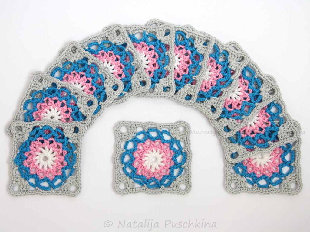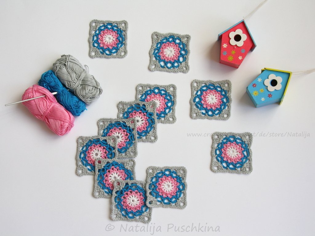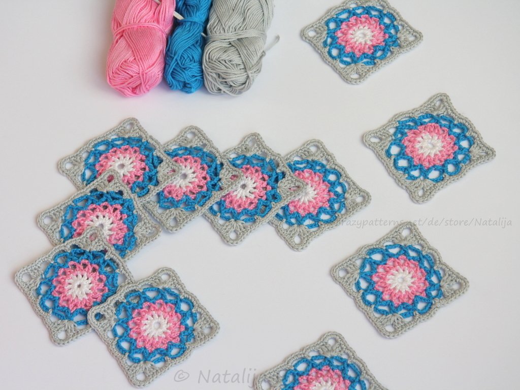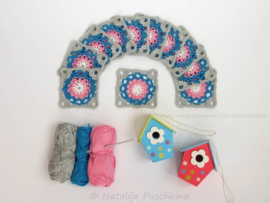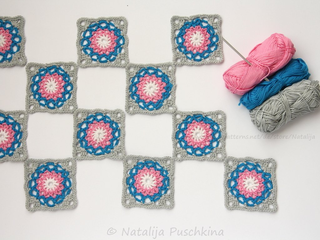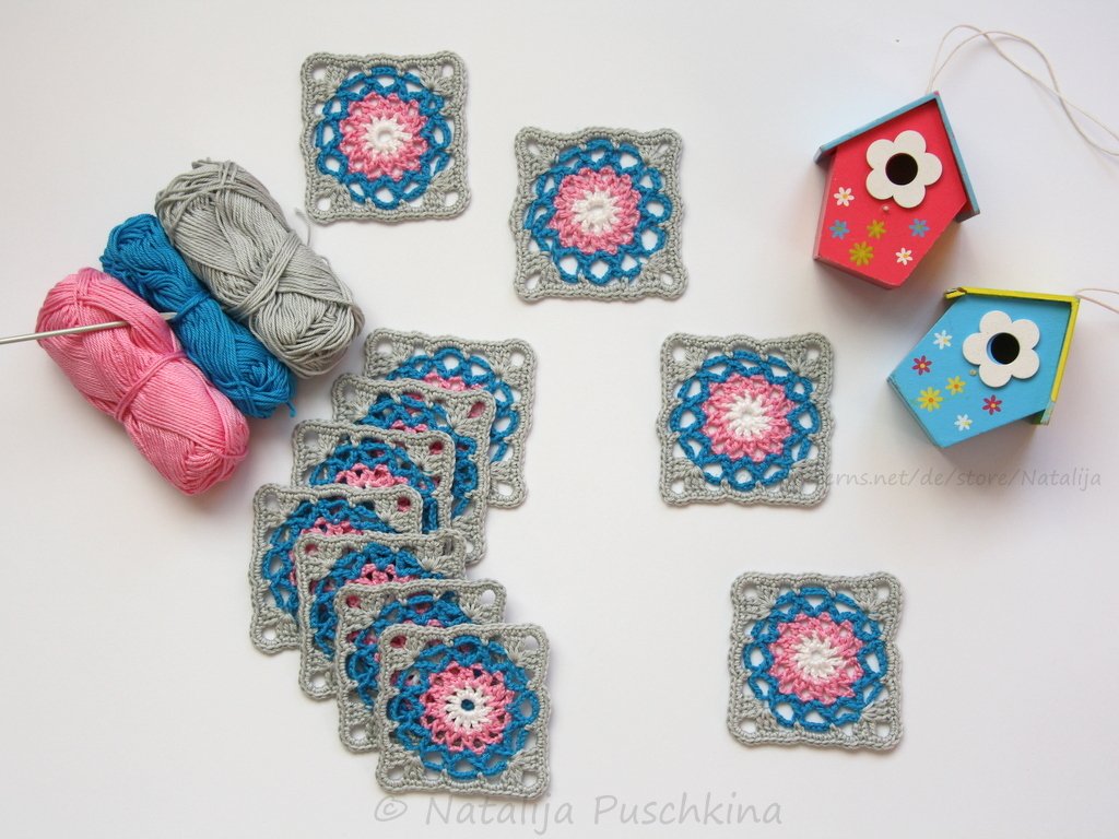 Verkauf der von Dir hergestellten Granny-Squren ist möglich: Du darfst die Artikel, die Du mithilfe meiner Anleitung zum Häkeln von Square 'Blume' gefertigt hast, in beliebiger Stückzahl gewerblich verkaufen. Bitte den Hinweis: „Angefertigt nach dem E-Book von Natalija Puschkina https://www.crazypatterns.net/de/store/Natalija“ dazusetzen.