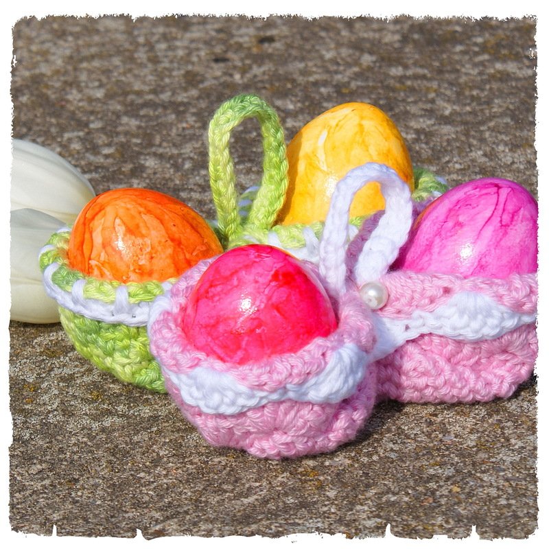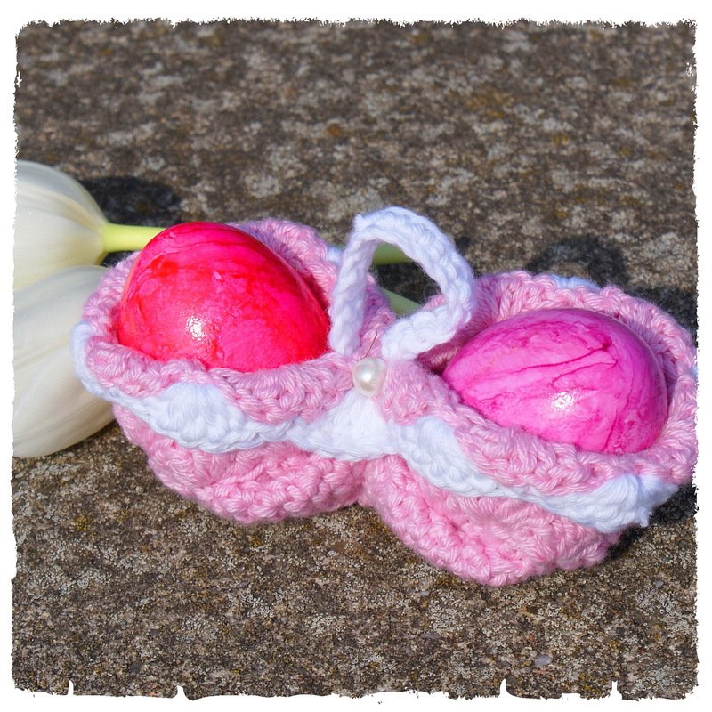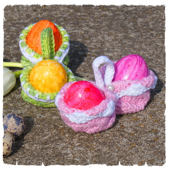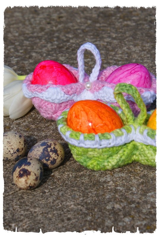 ✻✻✻ Diese beiden Eierkörbchen sind was ganz besonders. Es gibt sie in zwei Designs. Eines ist eher schlichter und das andere im romantischen Muschelmuster, was sich gut für Mädchen oder Frauen eignet. Wenn du jemanden eine kleine Aufmerksamkeit zum Osterfest machen möchtest, lässt sich auf jeder Seite ein Osterei verstecken. Auch ein super Geschenk für Oma und Opa, oder die Kinder, oder wen man auch sonst beschenken möchte. Sie sind super schnell gehäkelt und sehen trotzdem extravagant und schwierig aus, so was hat bestimmt nicht jeder… ✻✻✻
