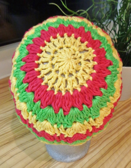 Material: Original No. 4 myboshi | Farben: Nr. 416 (gelb), Nr. 466 (rot-pink), Nr. 424 (grün)