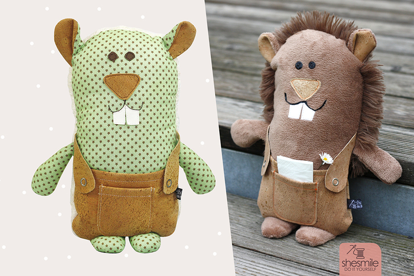 Das Schnittmuster ist besonders gut für Kork, Kunstleder, Jeans oder alte Kleidungsstücke mit Erinnerungen geeignet. Materialien, bei denen kein Versäubern notwendig ist. Kombiniert mit Baumwolle oder Kuschelplüsch wird daraus dein freundlich fröhliches Sorgentier.