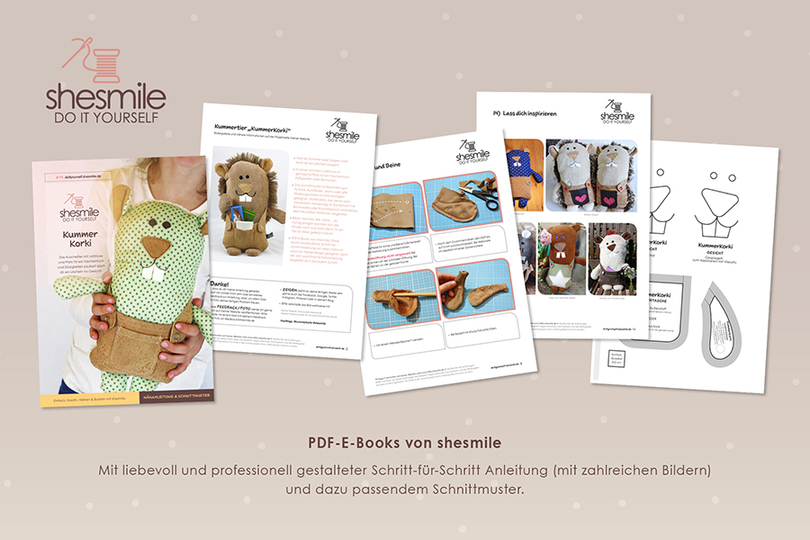 PDF-E-Books von shesmile: Diese leicht verständliche Schritt-für-Schritt-Anleitung mit vielen Fotos ist auch für Nähanfänger geeignet, denn die sehr ausführliche Fotoanleitung begleitet dich bei jedem Schritt.