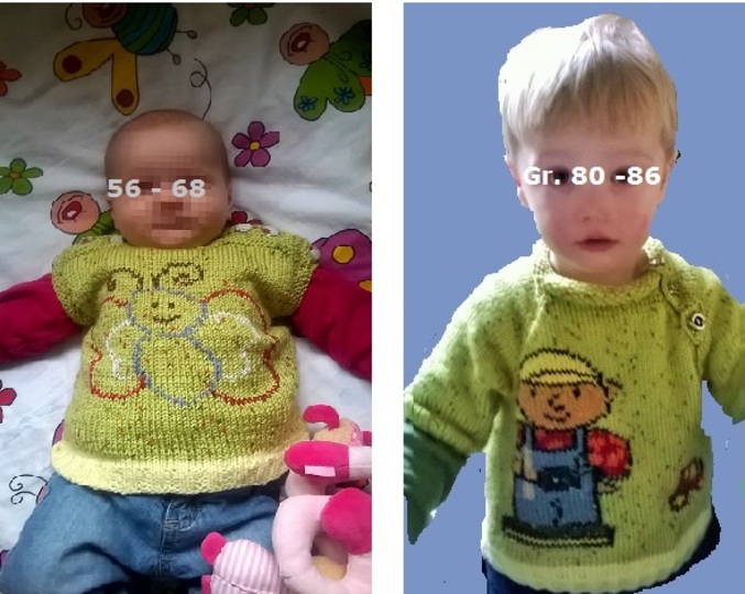 Mein 20 Monate altes Enkelkind ist ganz verrückt nach Trecker, Bagger und Bob der Baumeister und möchte diesen Pulli am liebsten nicht mehr ausziehen.