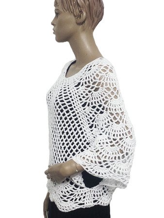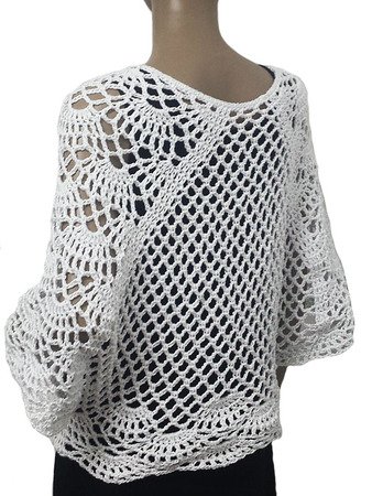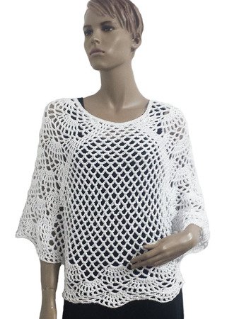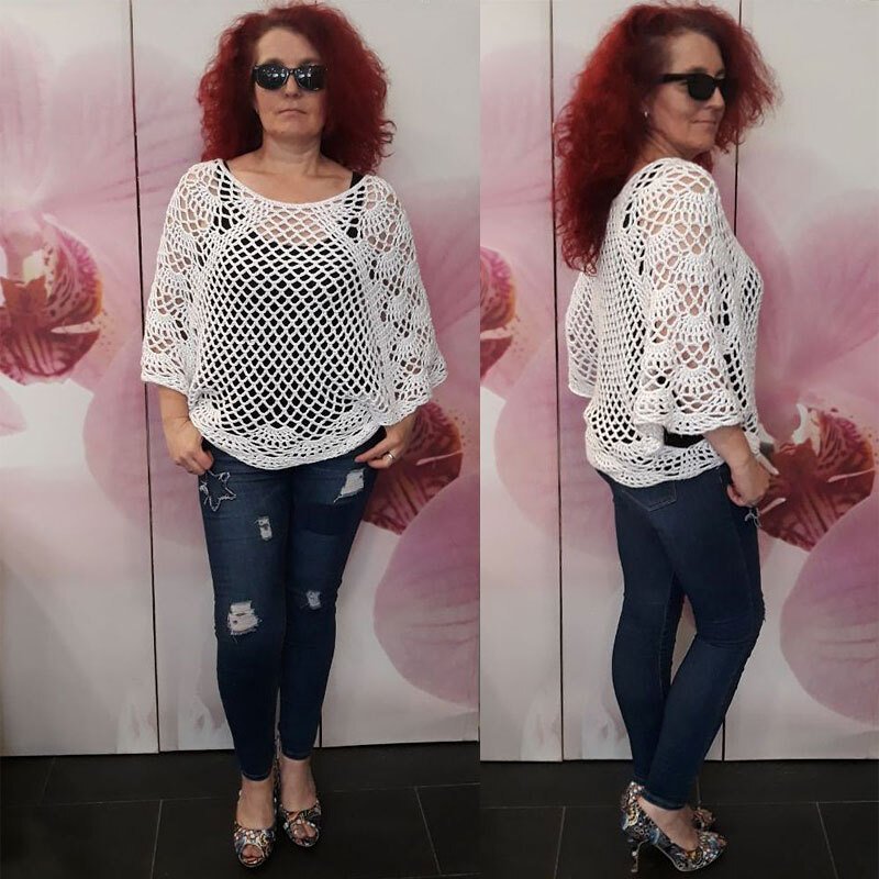 Das Material ist für Nadel Nr. 5 und mit dieser wird ein großmaschiges Muster gehäkelt das dem Shirt diese lockere Optik gibt.