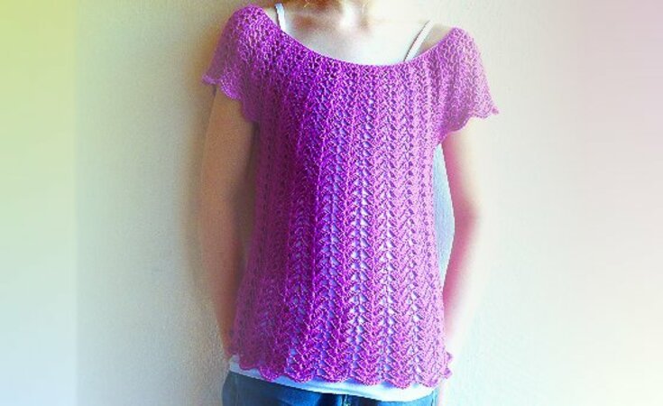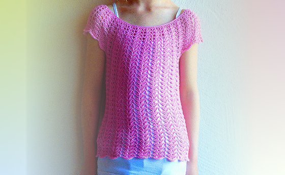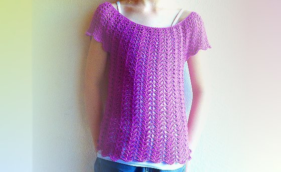 Es wird vom Halsausschnitt abwärts in Runden gearbeitet. Stück für Stück sieht man das Top wachsen.