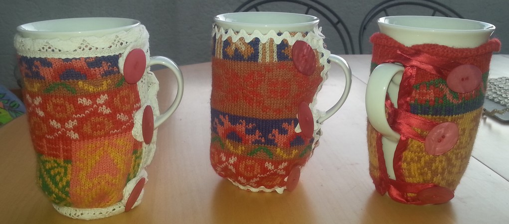 Ein netter Nebeneffekt: der Kaffee bleibt mit dem Tassenwärmer aus Wolle auch noch eine ganze Weile länger warm.