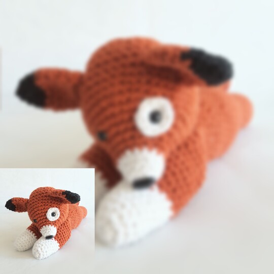Bei Verwendung der angegebenen Wolle bekommt dein Füchslein eine Größe von ca 28 cm (ohne Ohren gemessen)