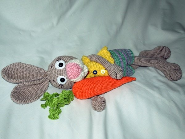 Darf ich euch Hajo Hase vorstellen. Der ist mir, mit seiner Karotte, gerade von der Nadel gehüpft.