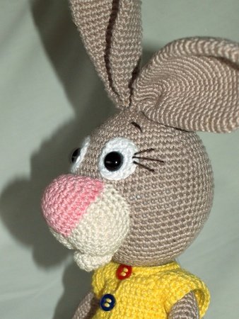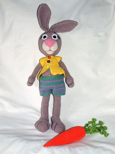 Der Hase wird ca. 45 cm groß (mit Catania-Wolle).