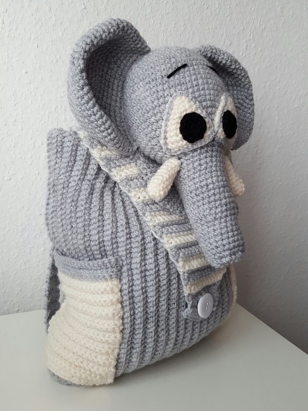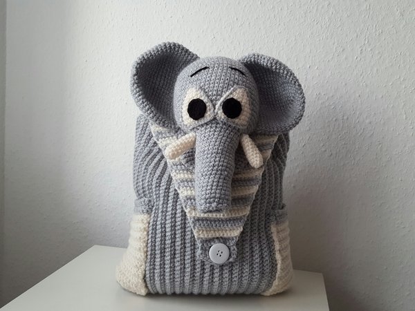 Häkelanleitung für einen niedlichen Kinderrucksack Elefant