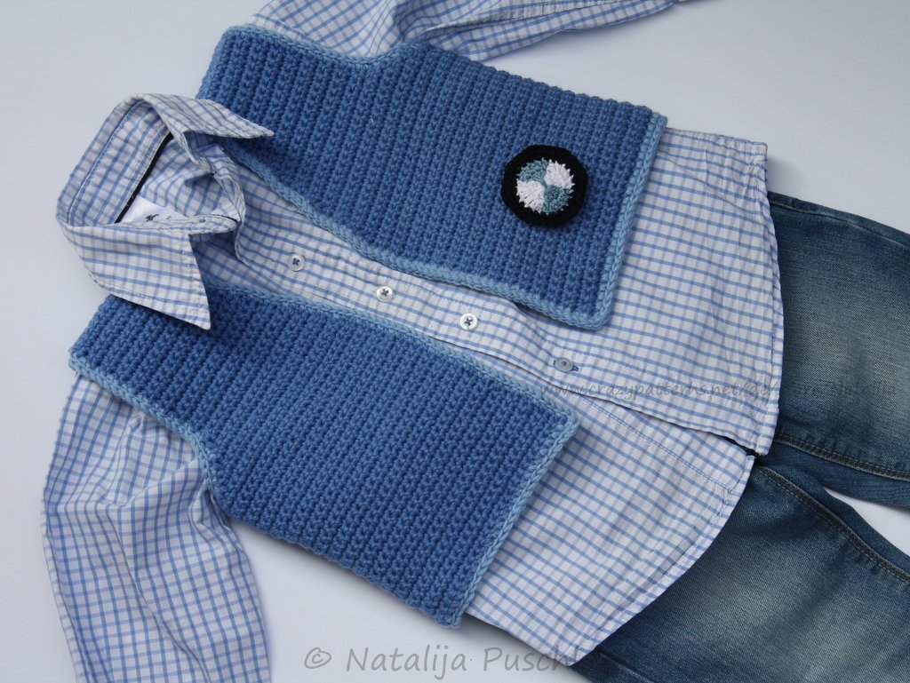 Verkauf der von Dir hergestellten Westen ist möglich: Du darfst die Artikel, die Du mithilfe meiner Anleitung zum Häkeln von Westen gefertigt hast, in beliebiger Stückzahl gewerblich verkaufen. Bitte den Hinweis: „Angefertigt nach dem E-Book von Natalija Puschkina https://www.crazypatterns.net/de/store/Natalija“ dazusetzen.