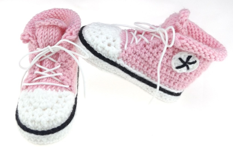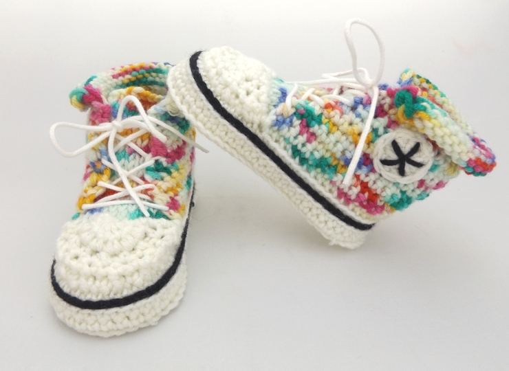 Eine komplett gehäkelte Anleitung findet Ihr auch unter: https://www.crazypatterns.net/de/items/44486/haekelanleitung-babyschuhe