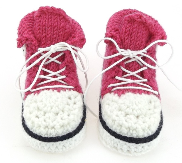 Die Schuhe sind eine Kombination von Häkeln und Stricken - die Zunge und das Bündchen werden gestrickt und Rest gehäkelt! Eine genaue Schritt für Schritt - Anleitung (PDF-Datei) mit über 50 !!! Bildern macht das Nacharbeiten leicht. Häkel- und Strickkenntnisse sollten allerdings vorhanden sein.