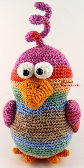 Vögelchen Vera wird bei festem Häkeln ca. 12,5cm hoch und ca. 9cm breit.