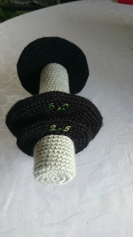 Die Idee kam mir, als ich für meinen Bruder (mehrfacher Weltmeister im Bankdrücken) eine Geschenkidee brauchte :) Da es immer etwas schwieriger ist, ein gehäkeltes Geschenk für einen Mann zu machen, habe ich seine Leidenschaft (Gewichte stemmen) halt mit meiner Leidenschaft (Häkeln) verbunden :)