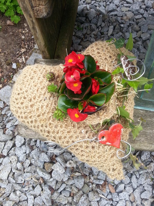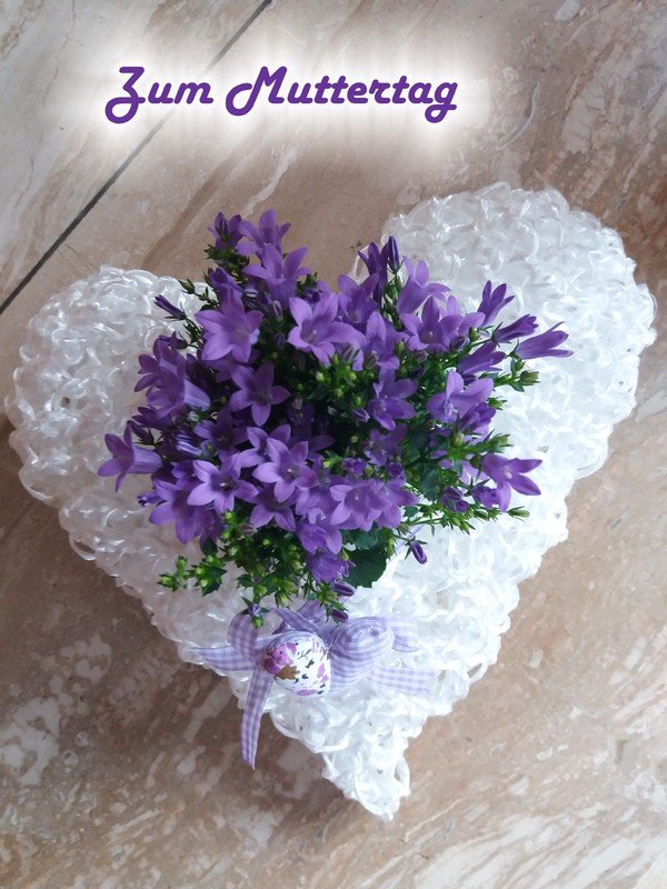 Das Muttertagsherz (Herz klein) ist aus Bindegarn gehäkelt mit einer 10er Häkelnadel und wird ca.24x26cm groß.