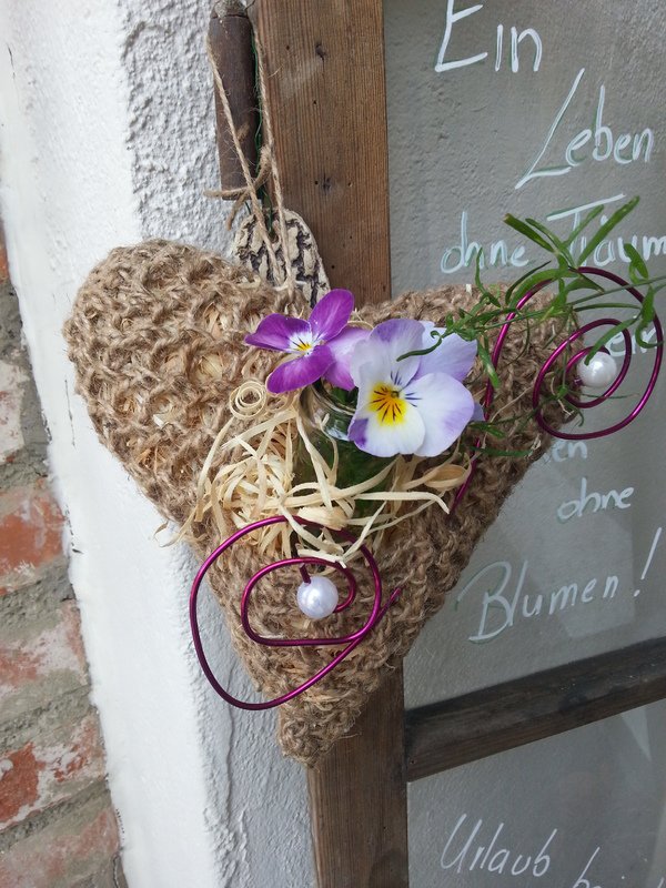 **Häkelanleitung Gartendeko: Herz aus Paketschnur und Bindeband