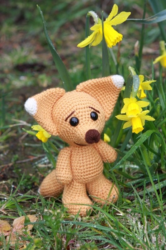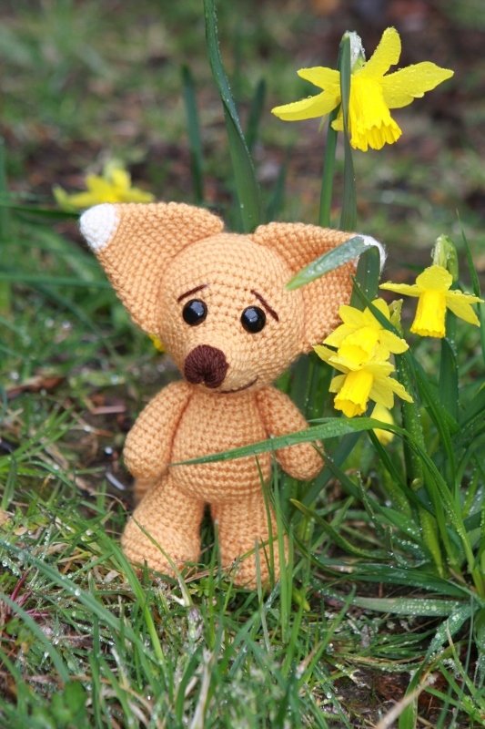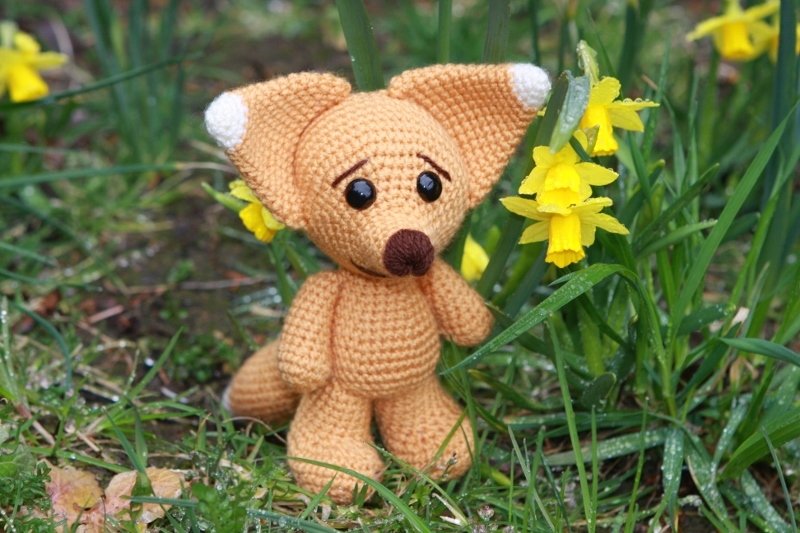 Bei Verwendung von Schachenmayr Bravo und Nadelstärke 2,5 wird Fennec im Stehen etwa 15 cm groß.