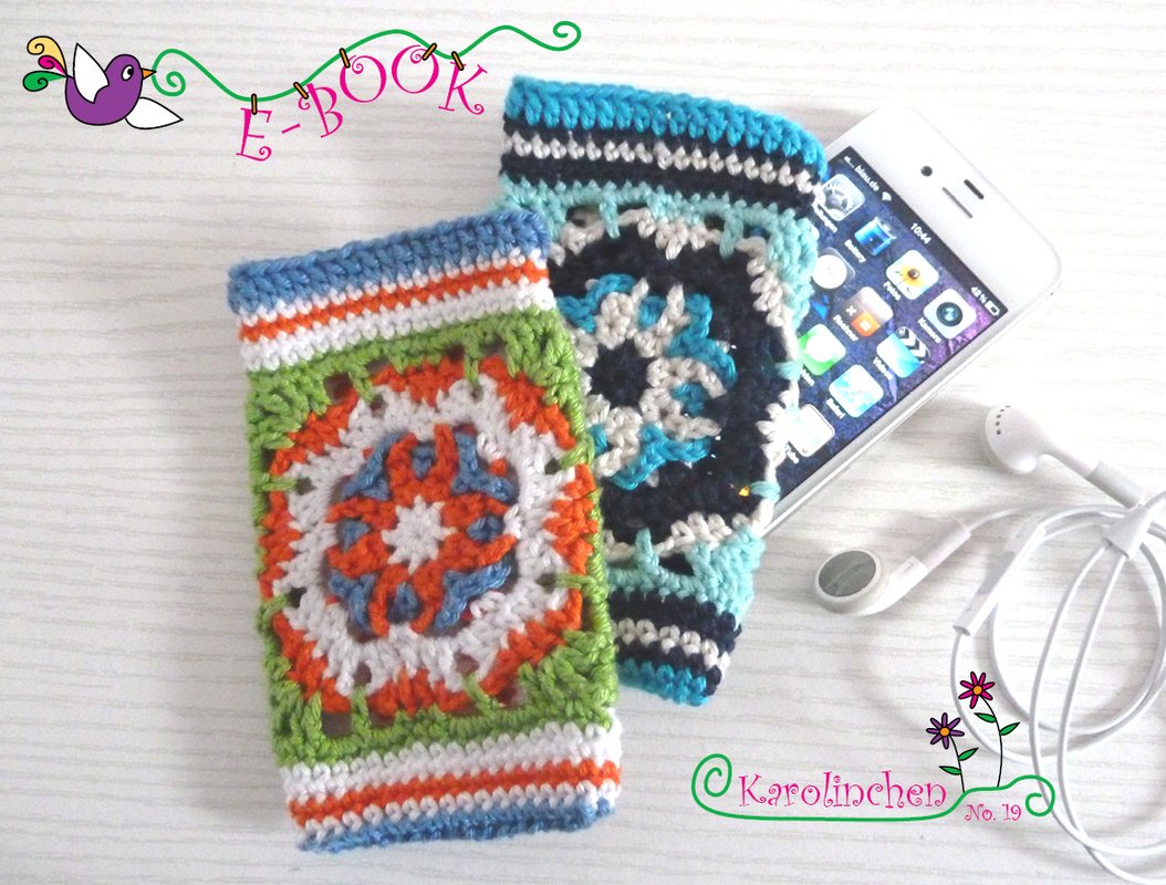 Sie erhalten eine umfangreiche 10-seitige Anleitung zu der von mir entworfenen Granny Square Tasche für ein i-Phone, i-Pot (MP3) oder Handy. In diese Taschen paßt auch ein Päckchen Papiertaschentücher. Es werden zwei verschiedene Granny Square Farbkominationen vorgestellt.