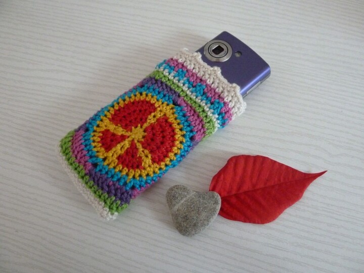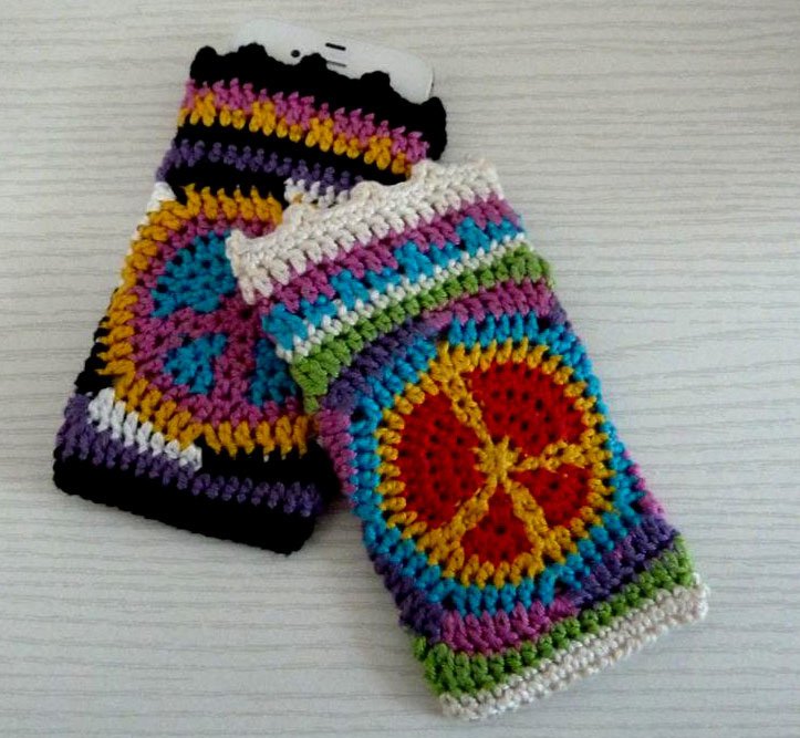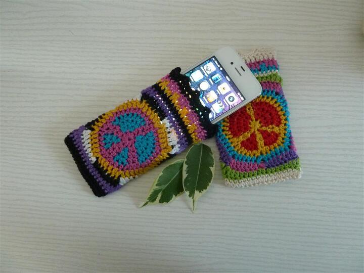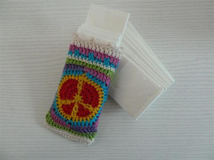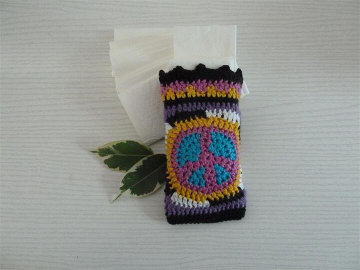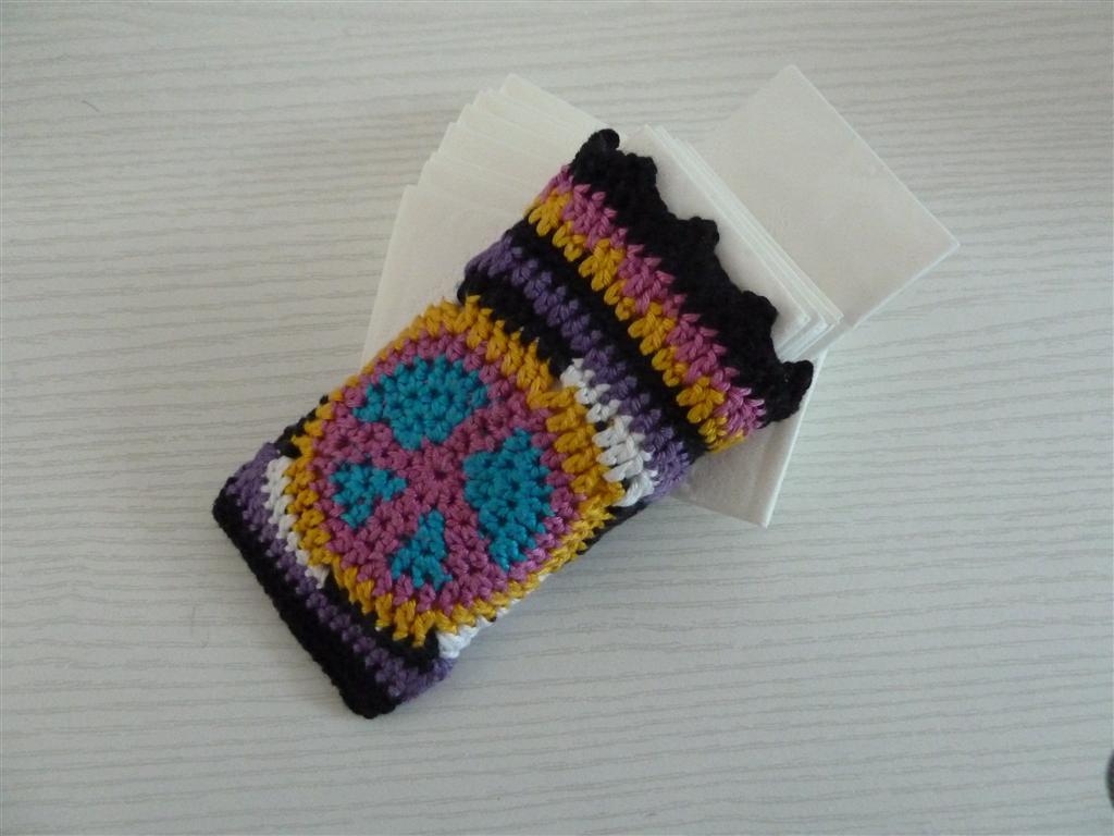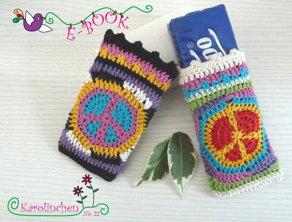 Sie erhalten eine umfangreiche 10-seitige Anleitung zu der von mir entworfenen Granny Square Hülle mit Peacezeichen für ein i-Phone, i-Pod (MP3) oder Handy. In diese Taschen paßt auch ein Päckchen Papiertaschentücher. Es werden zwei verschiedene Granny Square Farbkominationen vorgestellt.