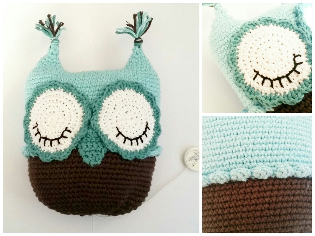 Eule ELISA wurde aus 100% Bio-Baumwolle gehäkelt und ist am Ende ca 18x20 cm groß.