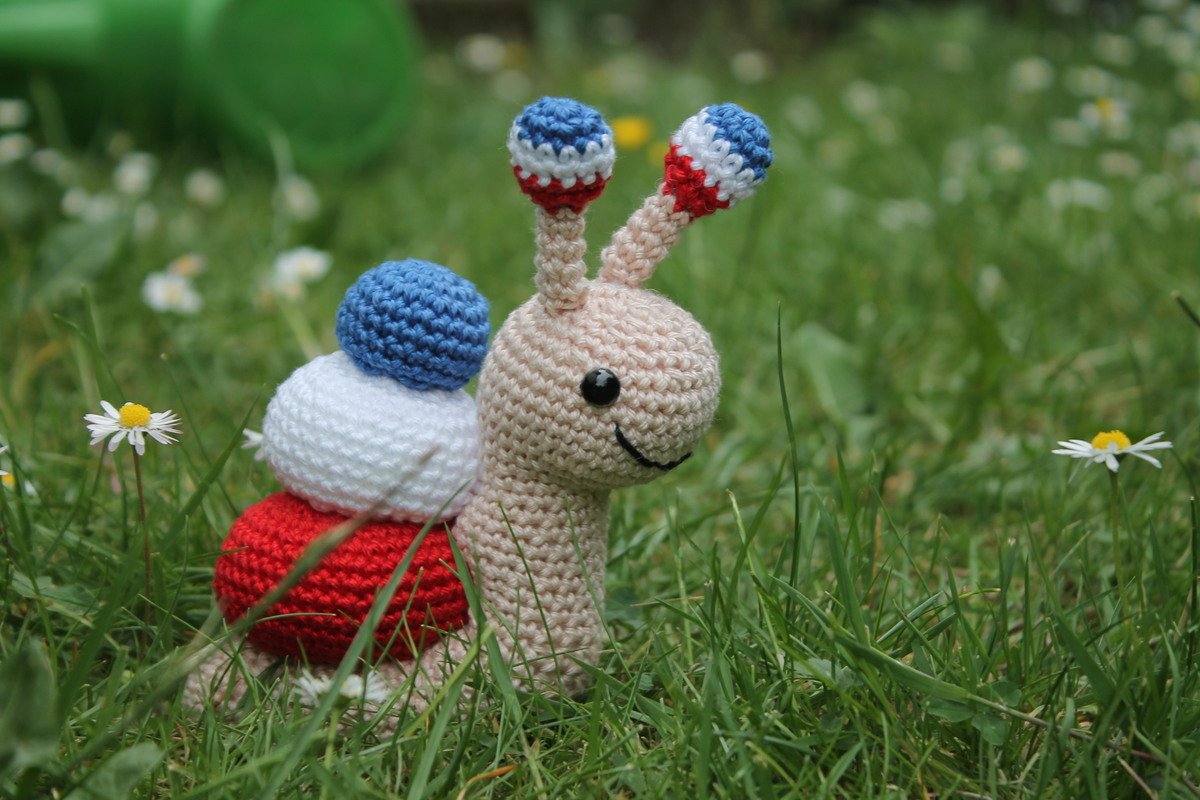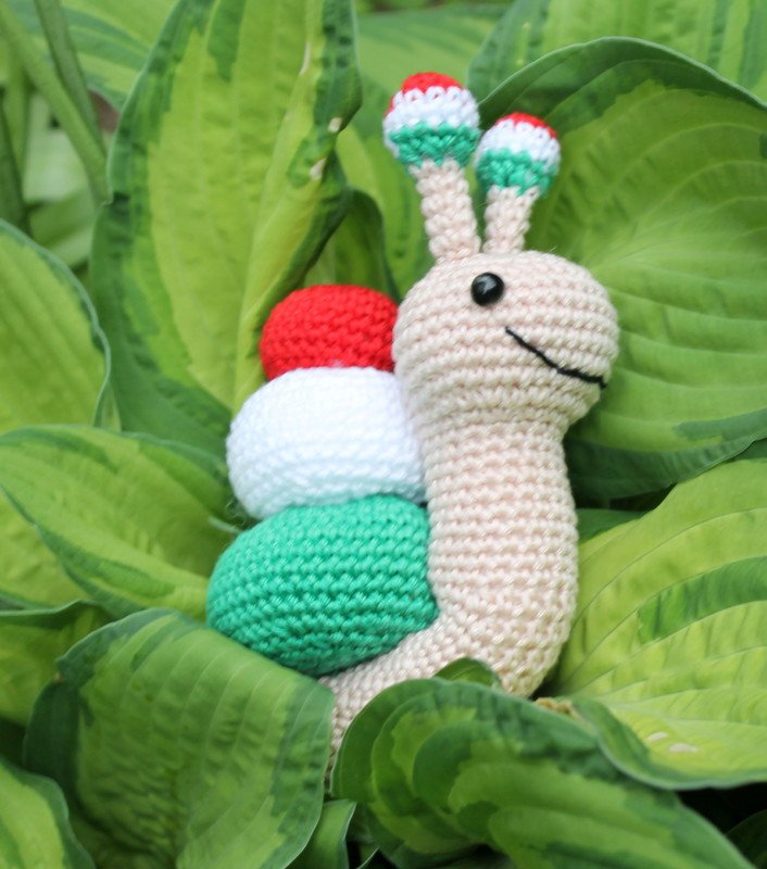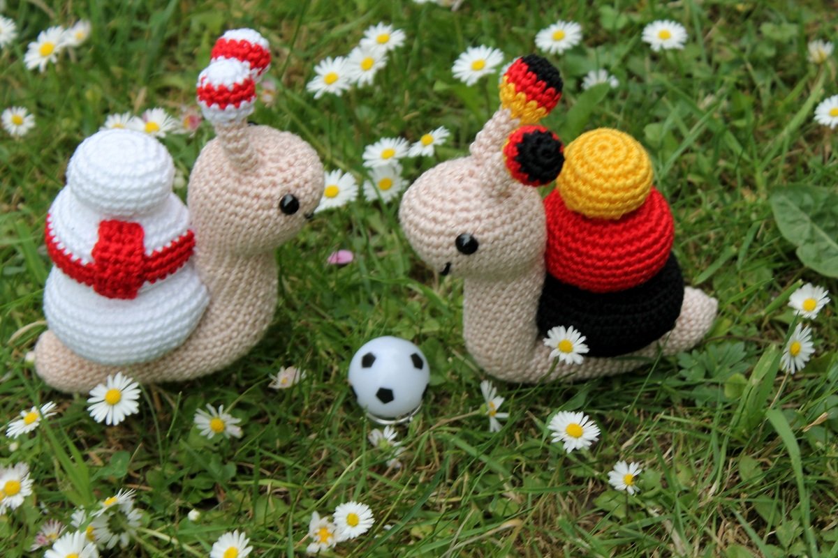 Fertig gehäkelt werden die Schnecken ca 15 cm groß.