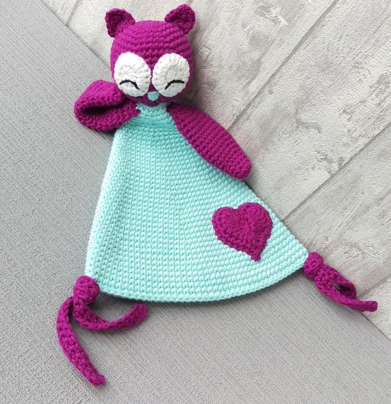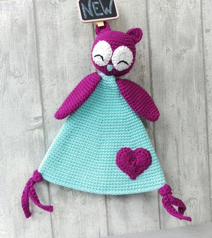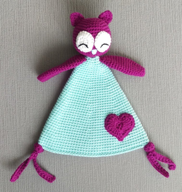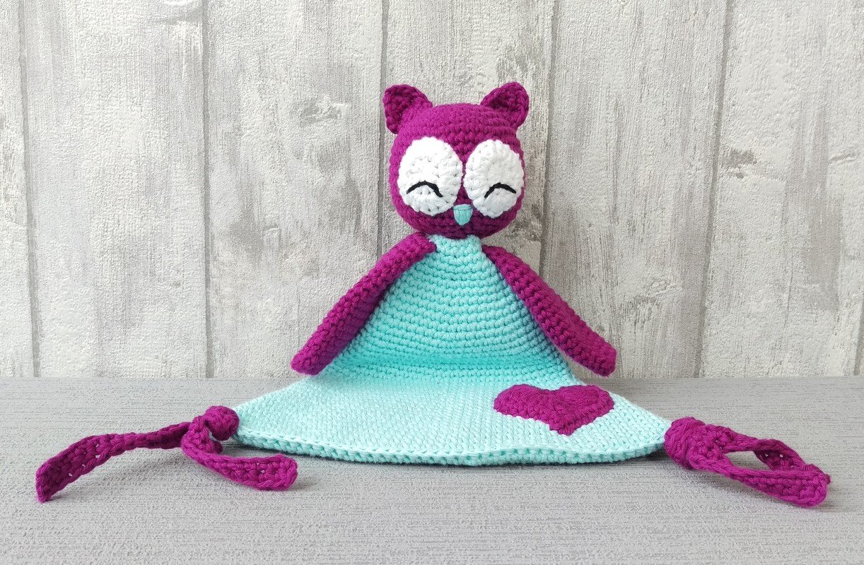 Häkelanleitung für ein Schmusetuch in Form einer Eule